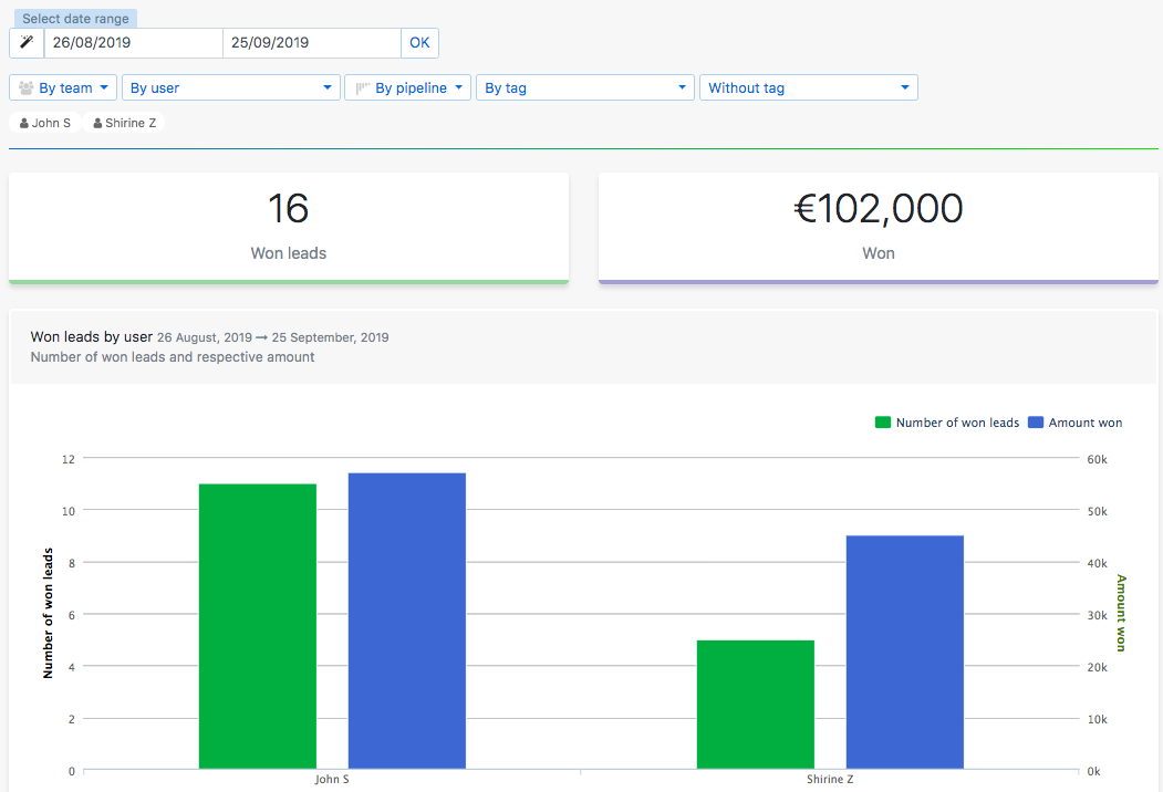 - Comparing the performance of two different sales reps. In the images below, we show you that it’s possible to compare John’s performance to Shirine’s performance.