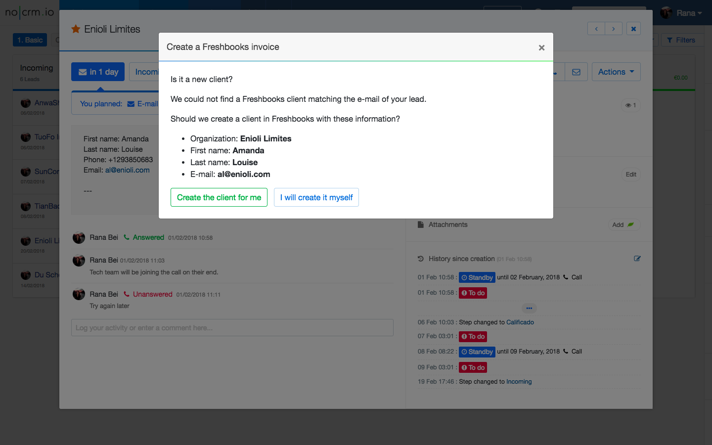 - Adjunte automáticamente facturas de Freshbooks a leads existentes.