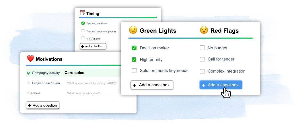 En propipelines.com, nuestro equipo de ventas diseñó su propio script de ventas. Tomó la forma de una lista de preguntas para preguntar a cada lead con casillas de verificación con el fin de evitar perder tiempo. Al final, con un solo clic, todos los datos podrán enviarse directamente a un software de gestión de leads o de ventas.