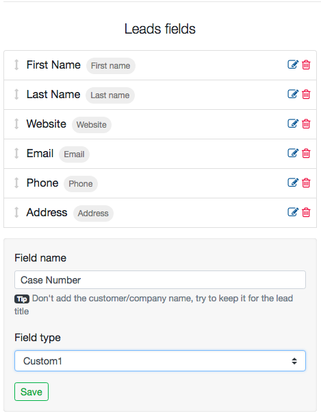 Avant de configurer vos zaps, créer vos champs par défaut dans propipelines.com. Rentrez dans le Panneau d'administration > Champs par défaut. Ajoutez les champs et types de champs. A titre d'exemple, nous avons ici créé le champ "Case Number".