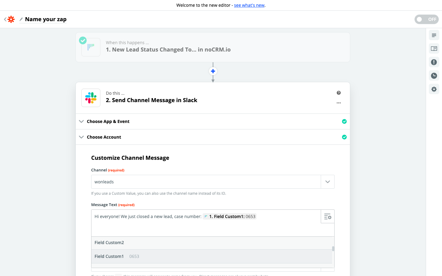 Vous souhaitez intégrer les champs par défaut de vos opportunité dans vos zaps ? Dans ce tuto nous vous montrons comment ajouter et utiliser vos champs par défaut pour annoncer dans Slack qu'une nouvelle opportunité propipelines.com a été gagnée.