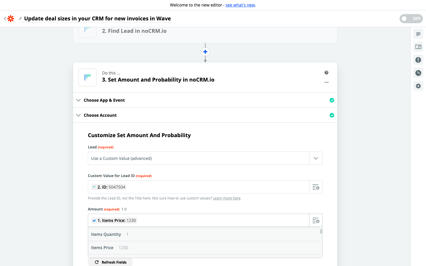 Ce guide vous montre comment vous pouvez actualiser le montant de vos opportunités en fonction de factures créées dans Wave Accounting.