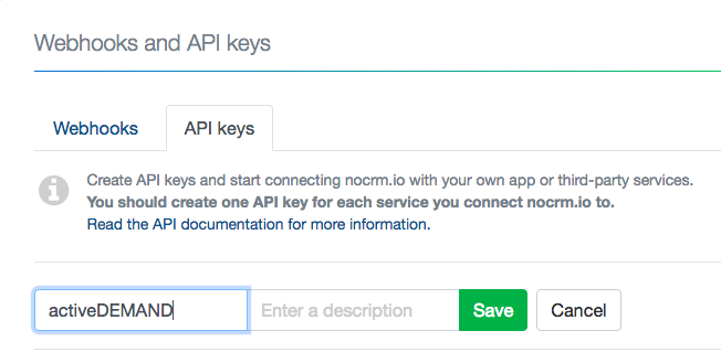 Dans votre compte ActiveDEMAND, allez dans Administration->Account Settings->Integrations->Third Party Applications. Cliquez sur 'Add Application' et choisissez "noCRM".