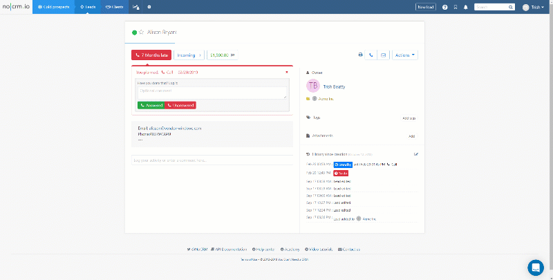Une fois que l'extension Chrome Lead Insights a été installée et que la connexion a été établie, vous serez en mesure de voir l'historique complet de tout ce que votre opportunité fait, d'utiliser le numéroteur pour les appeler, d'envoyer un SMS personnalisé et de les ajouter à une campagne drip de votre choix.