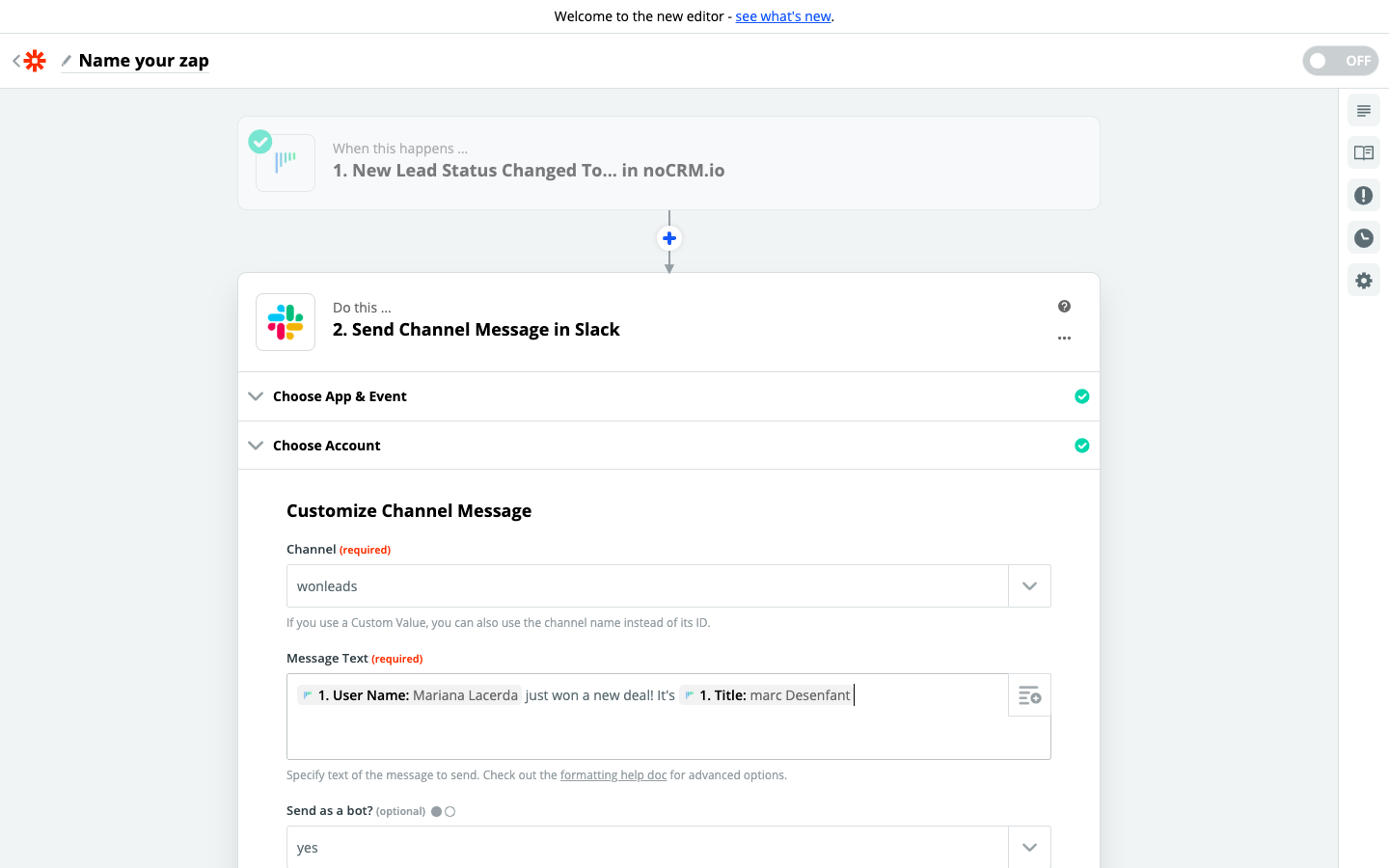 Vous voulez annoncer que vous venez de ajouter un nouveau deal sur votre compte Slack? C'est simple!