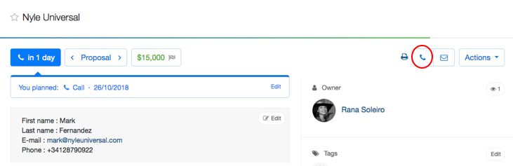 En connectant propipelines.com à Aircall, vous pouvez appeler vos opportunités depuis propipelines.com et enregistrer de manière automatique le numéro appelé, la durée de l'appel, et la conversation (lien vers l'enregistrement).