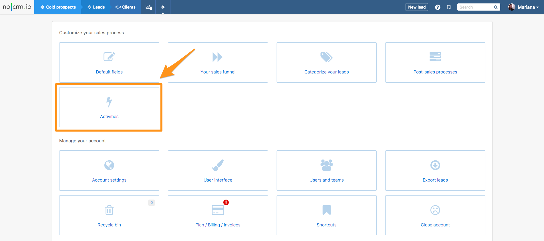 Como explicado já em várias ocasiões, o nosso sistema se adapta às necessidades do cliente. Muitas secções da ferramenta podem ser personalizadas e adaptadas ao seu processo de vendas, e as ações predefinidas são uma delas.