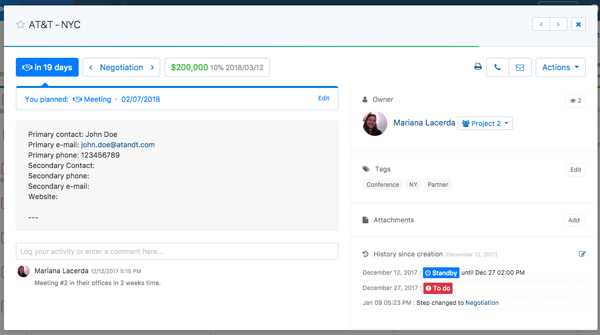 O nosso sistema de gerenciamento de leads foi desenvolvido para que uma pessoa nunca se esqueça da próxima ação com um potencial cliente. O lead é o elemento principal do sistema, e sempre que um novo lead é criado, tem o status "Para Hoje!", o que significa que você precisa gerencia-lo de imediato. Uma vez completada a ação, passa o status para "Standby", com um alerta para a próxima ação.