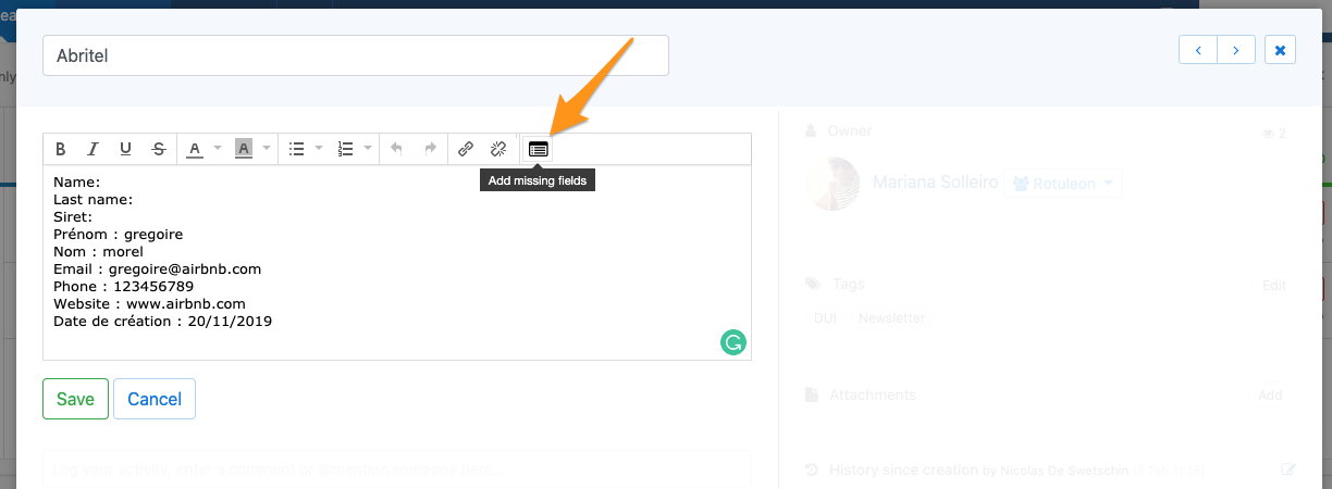 Para evitar os problemas habituais causados por inúmeros campos na hora de criar um lead, o nosso sistema propõe um campo de texto.